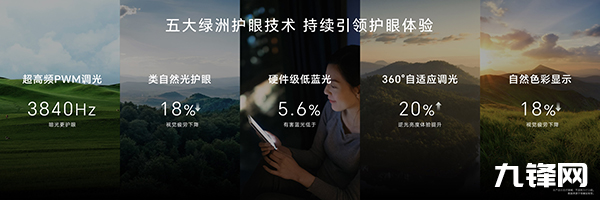 屏幕支持3840Hz超高頻PWM零風(fēng)險調(diào)光,搭配榮耀綠洲五大護(hù)眼技術(shù),持續(xù)引領(lǐng)行業(yè)護(hù)眼體驗。