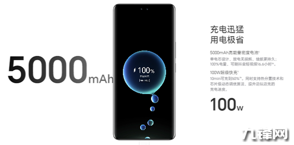 榮耀100 Pro內(nèi)置5000mAh三極耳單電芯電池,支持100W快充(30分鐘充電100%),66W無(wú)線快充(42分鐘充電100%)