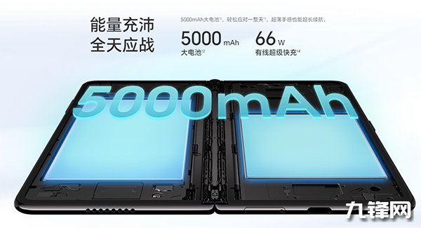 在如此輕薄的機身下,榮耀Magic Vs2內(nèi)置了5000毫安時大容量電池,在折疊使用的情況下,續(xù)航時間超iPhone 15 Pro 2.2個小時。