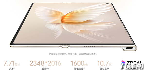 屏幕上,它搭載了一塊整體素質(zhì)均衡的7.71英寸大屏幕——分辨率為2348×2016,支持10.7億色顯示、DCI-P3廣色域、90Hz刷新率、240Hz觸控采樣率和2160Hz高頻PWM調(diào)光,全局峰值亮度1000nit,局部峰值亮度1600nit。