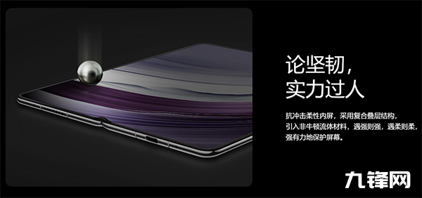 內(nèi)屏方面,華為Mate X5通過復(fù)合疊層結(jié)構(gòu)和“遇強(qiáng)則強(qiáng)、遇柔則柔”的非牛頓流體材料,使得屏幕在遇到外力沖擊時(shí)能瞬間變得堅(jiān)硬耐造,而面對(duì)正常的打開、閉合時(shí),其又能變得非常柔軟順滑,以此帶給用戶舒適的開合手感。