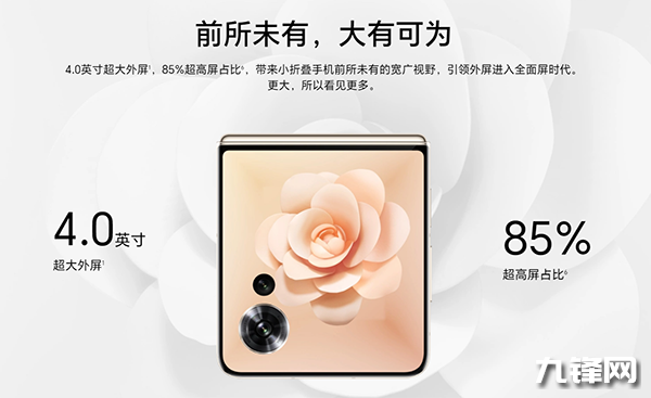 相比友商的小折疊,榮耀Magic V Flip最大的特點就是這塊目前行業(yè)最 大的4英寸“夢想小巨幕”,外屏采用了左下角挖孔設(shè)計,鏡頭之外整個區(qū)域都是屏幕,屏占比高達(dá)85%。