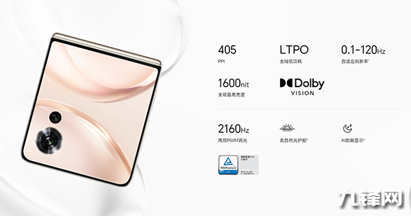 外屏:尺寸是4英寸,分辨率是1200×1092,OLED材質(zhì)屏幕,屏幕供應(yīng)商是京東方,全局峰值亮度1600nit、局部激發(fā)亮度2500nit,支持120Hz LTPO(0.1-120Hz),2160Hz高頻PWM調(diào)光,類自然光護眼、AI助眠顯示,85%屏占比;