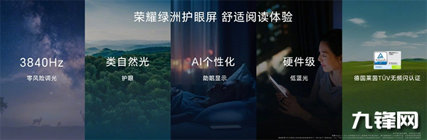 內(nèi)屏方面,采用了一款6.8英寸OLED榮耀綠洲護(hù)眼屏,支持2520×1080分辨率、全局峰值亮度1500nit、局部激發(fā)亮度3000nit、LTPO(1-120Hz)、3840Hz高頻PWM調(diào)光,類(lèi)自然光護(hù)眼、AI助眠顯示,支持92%BT.2020色域覆蓋,支持10.7億色。