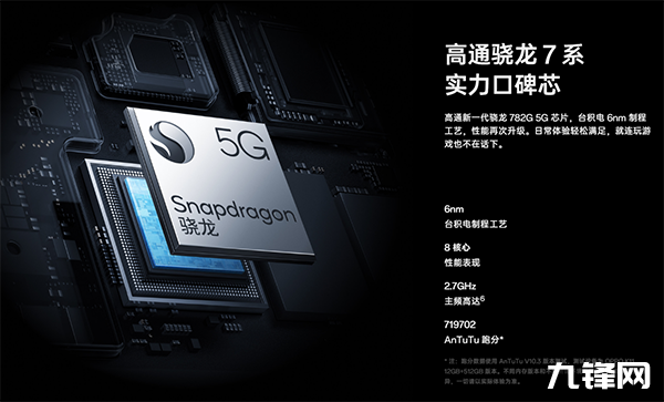 性能上,采用的是高通驍龍782G芯片,搭配LPDDR4X+UFS3.1內(nèi)存,安兔兔跑分在70萬分以上,比同價位段的驍龍6Gen1、天璣1080強(qiáng)不少,單從跑分來看,這個性能對于非競技手游用戶來說是完全夠用的。
