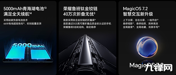 續(xù)航方面,這個(gè)榮耀Magic V2系列因?yàn)閮?nèi)置5000容量的青海湖電池,所以能夠形成長(zhǎng)續(xù)航的競(jìng)爭(zhēng)優(yōu)勢(shì)。