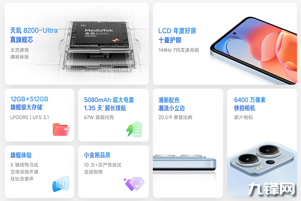 性能上搭載了Redmi和MediaTek聯(lián)合定義、深度聯(lián)調(diào)的天璣8200-Ultra,相比天璣8100,這枚SoC升級了制程工藝和主頻,理論性能要更加出色。