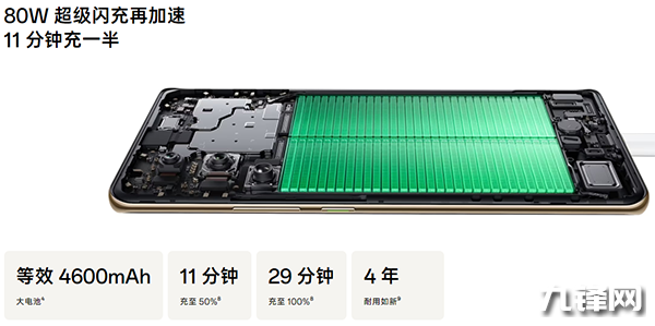 在電池方面,該機內(nèi)置4600毫安容量電池,屬于是雙電芯電池,并不是單電芯,并且支持長壽版80W充電技術。