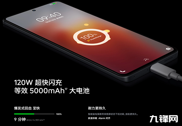 在電池和充電方面,該機(jī)還配備了一塊5000mAh雙電芯電池,支持120W超快閃充,根據(jù)官方數(shù)據(jù),最快僅需9分鐘即可將電池充至50%,充電速度非???。