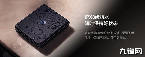 在防水方面,支持的是支持IPX8防水,這也是折疊屏手機中最高規(guī)格的防水等級了,折疊手機很難做到防塵,因此只支持IPX8,達不到IP68。