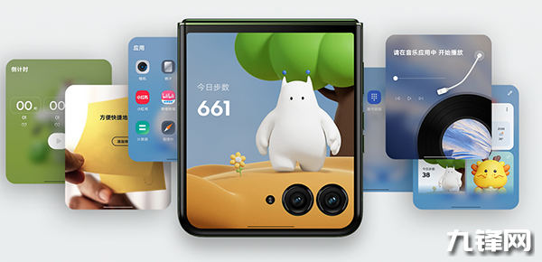 moto razr 50 Ultra AI給人的第一印象便是大外屏設計,其鏡頭模組采用更科學的橫向鏡頭排布設計,讓這臺手機外屏有效顯示面積更大的同時兼顧好手感,無論左手還是右手使用,都很順暢。