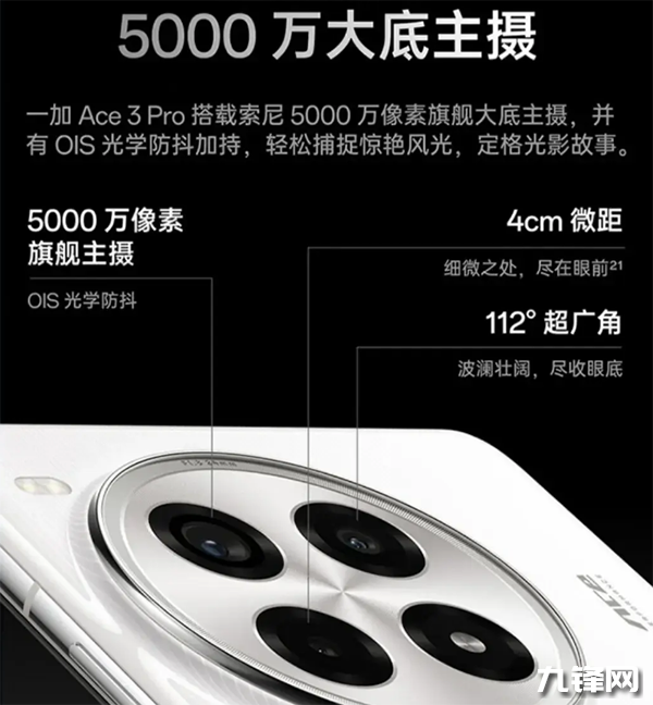 支持,一加Ace3 Pro配置了一個5000萬像素的主攝,并且支持OIS光學(xué)防抖。