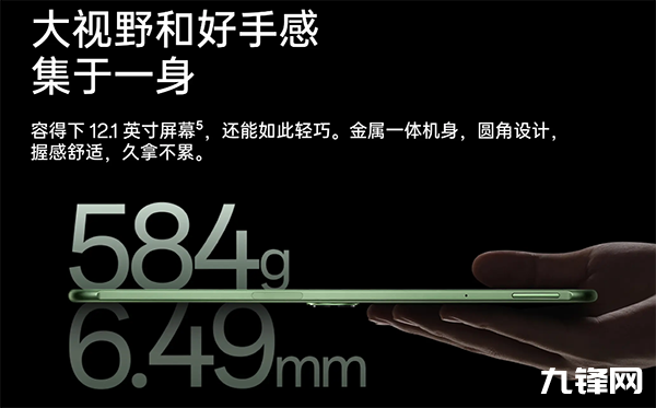也就是說,這次的一加平板Pro厚度是6.49mm,重量是584克。