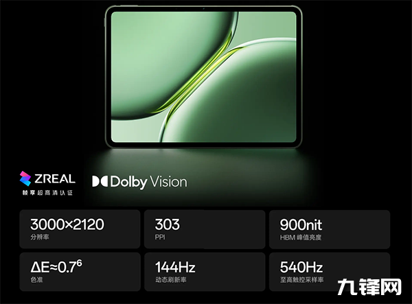 一加平板Pro屏幕參數(shù):尺寸是12.1英寸,分辨率是3000×2120(屬于是3K級(jí)別),LCD材質(zhì)的屏幕,144Hz高刷新率,屏占比88.40%,303PPI,觸控采樣率最高540Hz(默認(rèn)120Hz),手動(dòng)最高600nit亮度、峰值亮度900nit,DC調(diào)光,色域96%NTSC,色彩12bit(8+4bit),屏幕比例7:5,DC調(diào)光明眸護(hù)眼;