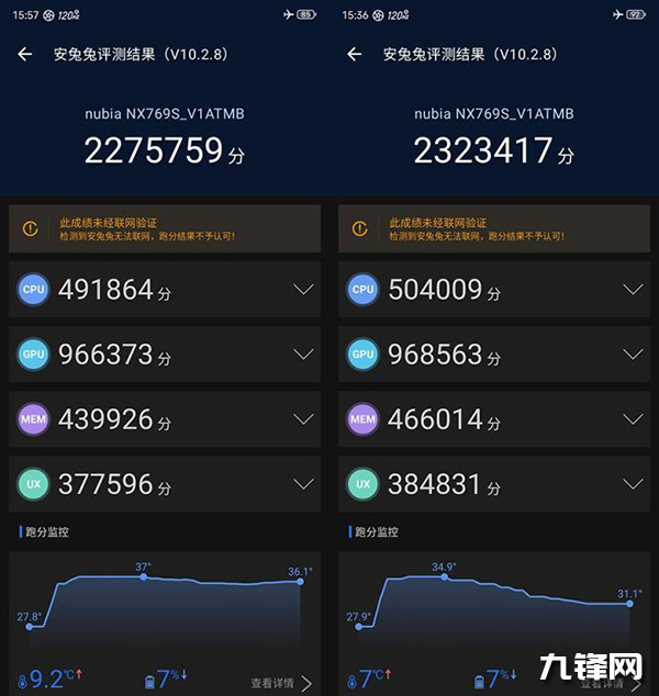 常溫環(huán)境安兔兔跑分超227萬分,通過風(fēng)扇進(jìn)行散熱后,跑分超過232萬分。