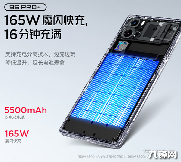 尤其是這個(gè)續(xù)航和充電方面,紅魔9S Pro版內(nèi)置6500mAh電池,支持80W快充,35分鐘充電100%,另外的Pro+版內(nèi)置5500mAh電池,支持165W快充,16分鐘充電100%,并且都支持充電分離。