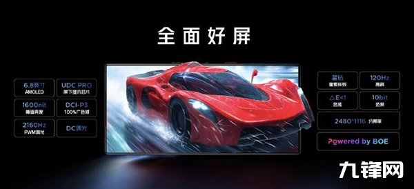 具體屏幕方面,采用6.8英寸2480*1116分辨率AMOLED屏幕,支持120Hz高刷、擁有93.7%屏占比,1600nit峰值亮度,DC調(diào)光+2160HzPWM調(diào)光,100%DCI-P3廣色域,10bit色深。