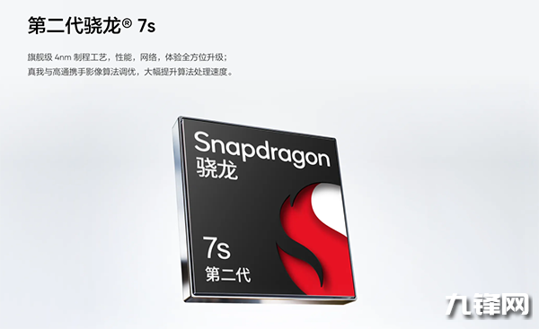 在性能上,該機(jī)搭載高通的4nm工藝驍龍7s Gen2芯片,2.4GHz主頻4核A78+1.95GHz主頻4核A55的架構(gòu),日常使用也夠了。