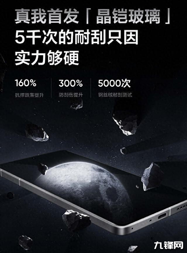 真我GT6全球首發(fā)晶鎧玻璃,官方宣稱抗摔跌落性能提升160%,防刮傷性能提升300%,即使是經(jīng)過5000次的鋼絲絨耐刮測試,屏幕依然保持清晰。