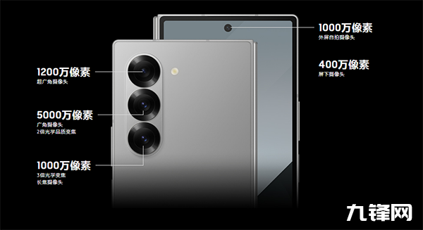 在后攝模組上,Galaxy Z Fold6采用了5000萬像素主攝+1200萬像素超廣角鏡頭+1000萬像素3倍長焦鏡頭的組合,其中主攝與長焦鏡頭都支持光學(xué)防抖,從參數(shù)上來看,這一配置已經(jīng)和直板旗艦S系列看齊,達到了第一梯隊的水平。