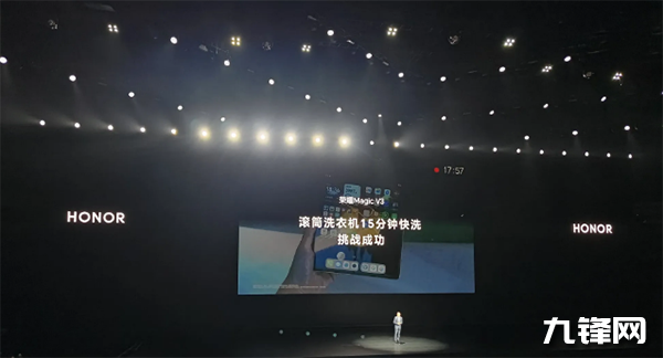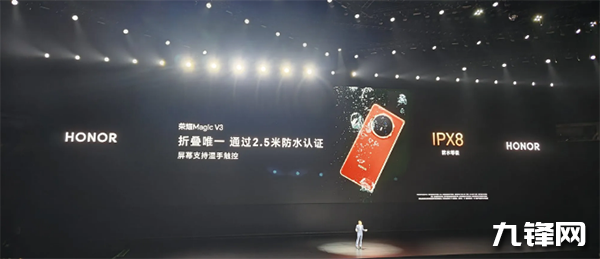 在防水方面,該機(jī)支持的是IPX8防水等級(jí),成為折疊屏中唯一通過2.5米防水認(rèn)證的折疊屏手機(jī),現(xiàn)場(chǎng)把榮耀Magic V3放進(jìn)滾筒洗衣機(jī)15分鐘快洗挑戰(zhàn)成功,這防水力超強(qiáng)。