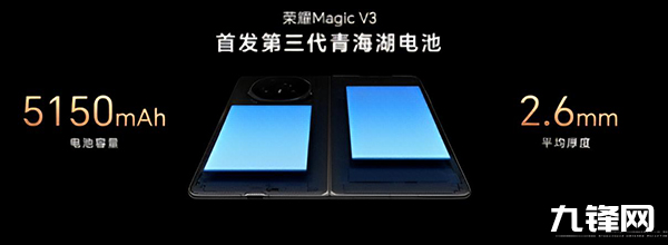 在電池的配置上,這次的榮耀Magic V3搭載第三代青海湖電池,硅含量率先突破10%,電池容量提升至5150mAh,電池的平均厚度僅為2.6mm,配合自研的能效增強芯片HONOR E1和榮耀都江堰電源管理系統(tǒng),能效管理精度提升3倍。
