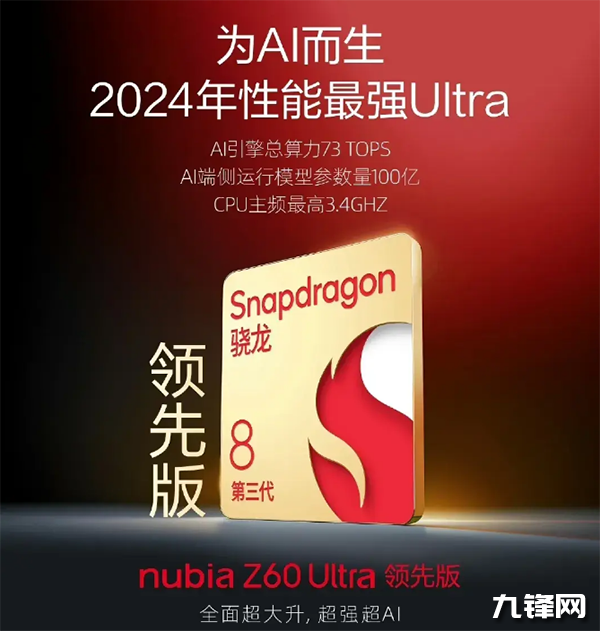 作為參考,標(biāo)準(zhǔn)版的努比亞Z60 Ultra旗艦手機搭載了驍龍8Gen3處理器,擁有至高24GB+1TB內(nèi)存組合,并且配備6000mAh電池,支持80W有線快充、USB3.1、紅外遙控等功能。