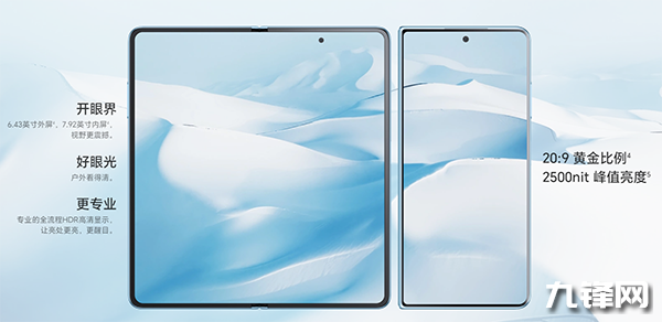 外屏搭載6.43 英寸OLED 屏幕,能實現(xiàn)2500nit的峰值亮度,內(nèi)部展開則是7.92英寸的OLED屏幕,能實現(xiàn)1600nit的峰值亮度。