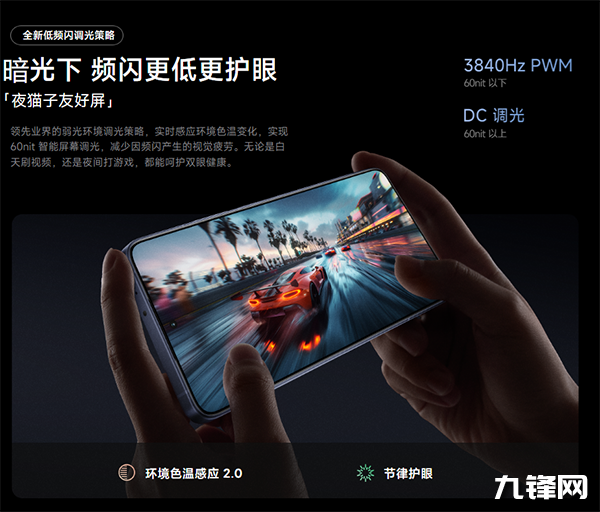 紅米K70至尊版搭載最新一代1.5K(2712×1220分辨率)旗艦直屏,支持144Hz高刷,這塊屏幕的亮點之一在于它的護眼特性,延續(xù)了青山護眼“醫(yī)工融合”的護眼理念,支持3840Hz超高頻PWM調(diào)光,在暗光環(huán)境使用頻閃風險更小。