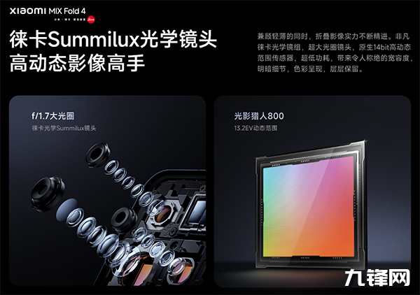 在整機(jī)減薄減重的同時(shí),小米MIX Fold4依然實(shí)現(xiàn)了影像能力的躍升,在折疊屏上首次搭載徠卡Summilux光學(xué)鏡頭,配備了全焦段四攝模組,這在橫向折疊手機(jī)中非常罕見。