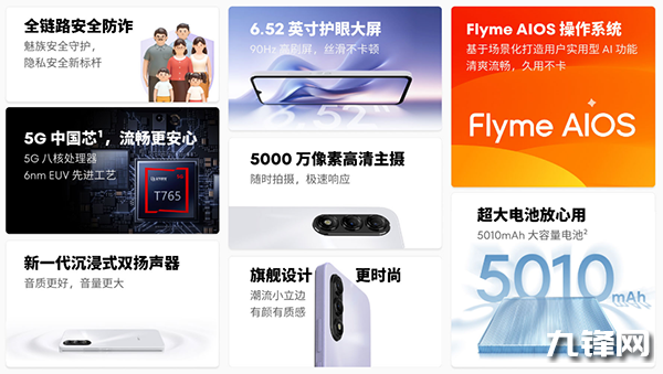 其它:支持5G雙卡雙待、3.5mm耳機(jī)孔、藍(lán)牙5.0、雙揚(yáng)聲器,搭載FlymeAIOS系統(tǒng)。