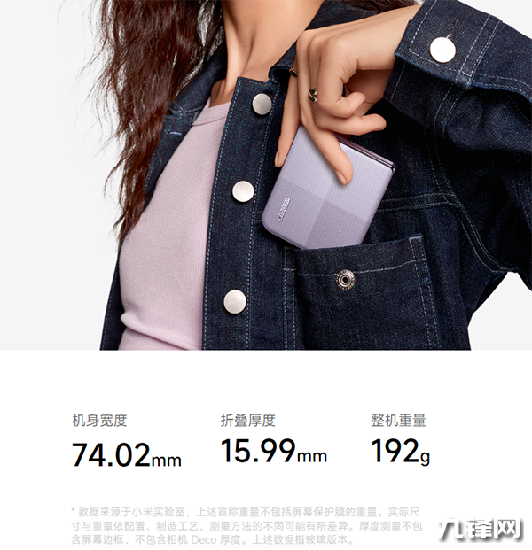 這次的小米MIX Flip的展開厚度為7.6mm,閉合厚度為15.99mm,整機(jī)重量為192克,而小米鳳羽纖維版因采用高分子尼龍材料雖稍微厚2mm,但整機(jī)的重量卻要更為輕盈,僅190克。