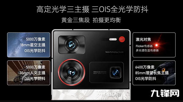 5000萬像素超廣角微距(豪威OV50E傳感器,1/1.55英寸,支持OIS光學(xué)防抖,F(xiàn)1.8光圈,等效焦距18mm)