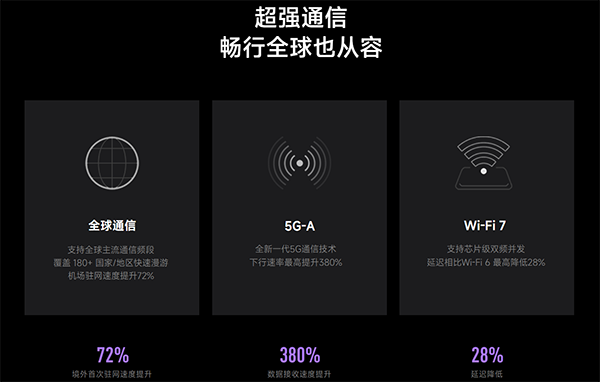 蜂窩網(wǎng)絡(luò)方面支持5G-A規(guī)格,Wi-Fi方面支持Wi-Fi7就不多贅述了,畢竟旗艦手機(jī)的配置就是應(yīng)該全面拉滿才對。