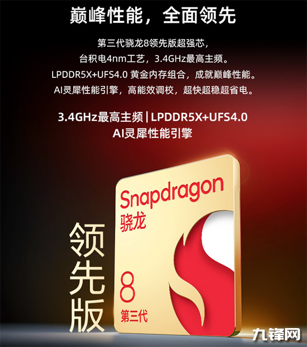 性能:搭載的是驍龍8Gen3領(lǐng)先版處理器,相當(dāng)于是驍龍8Gen3的超頻版,目前屬于是旗艦級(jí)別的性能水平;