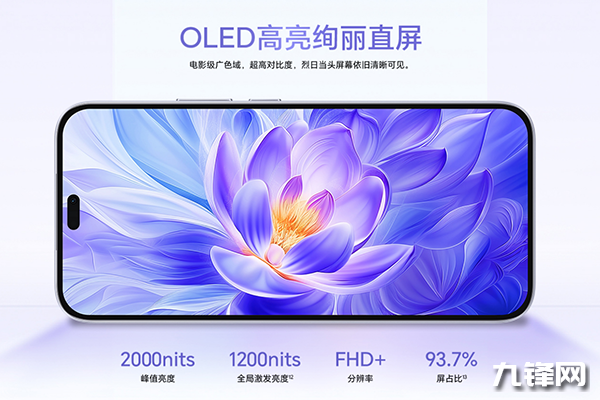 屏幕:尺寸是6.7英寸,OLED直屏(非LCD),分辨率為2412×1080(屬于1080P級(jí)別),最高90Hz刷新率,全局激發(fā)亮度為1200nits,局部峰值亮度達(dá)2000nits,93.7%屏占比,DCI-P3廣色域,10.7億色,3240Hz高頻PWM零風(fēng)險(xiǎn)調(diào)光,德國萊茵TUV無頻閃零風(fēng)險(xiǎn)調(diào)光認(rèn)證;