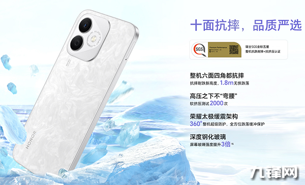 抗摔,榮耀X60i通過(guò)瑞士SGS金標(biāo)五星整機(jī)抗跌耐摔+擠壓認(rèn)證,整機(jī)六面四角都抗摔。