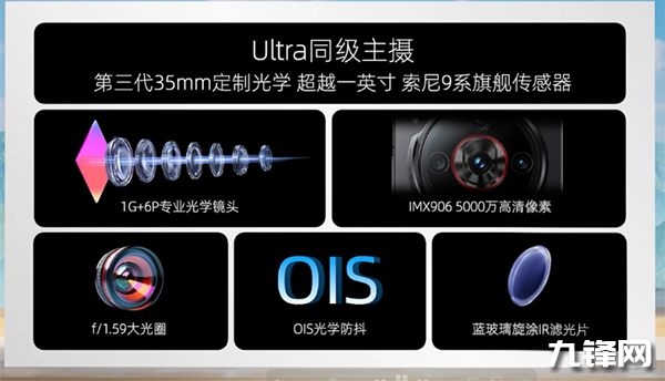 主攝鏡頭:5000萬像素,索尼IMX906傳感器,1/1.56英寸,支持OIS光學(xué)防抖,F(xiàn)1.59光圈,1G+6P,等效焦距35mm
