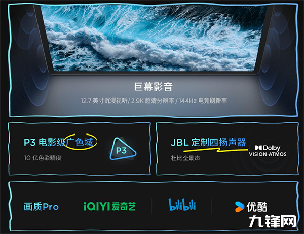 屏幕:尺寸是12.7英寸,分辨率是2944×1840(屬于2.9K級(jí)別),LCD材質(zhì)的屏幕,無(wú)塑料支架,支持144Hz高刷新率,240Hz觸控采樣率,273 PPi,支持DC調(diào)光,400nits亮度,支持10.7億色,DCI-P3廣色域,10bit色深,通過(guò)了德國(guó)萊茵TüV無(wú)反射認(rèn)證,萊茵全局護(hù)眼認(rèn)證3.0;
