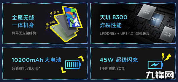續(xù)航:10200mAh電池容量,45W有線快充,1小時(shí)充電80%;
