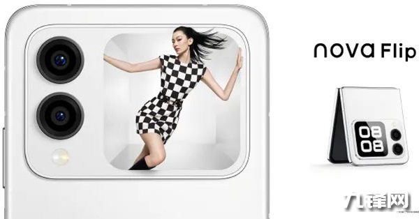 在整體的外觀造型上,這個(gè)華為nova Flip采用小尺寸折疊屏機(jī)型的類翻蓋式設(shè)計(jì),機(jī)身整體較為圓潤(rùn)。而在副屏方案上該機(jī)并未采用主流大面積副屏方案,而是一小塊方形副屏與后置雙攝鏡組相融合的造型方案。