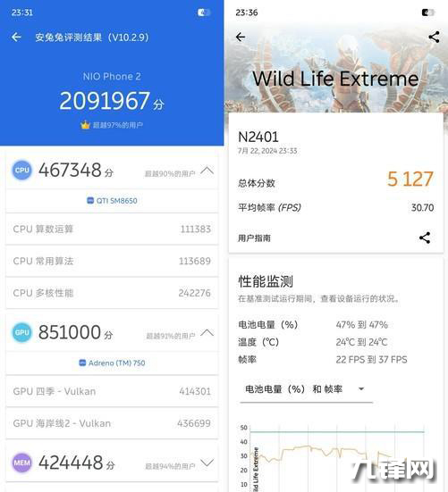209萬分,蔚來NIO Phone2搭載的是驍龍8Gen3處理器,目前屬于是旗艦級別的性能水平,該機(jī)的跑分在209+萬分。