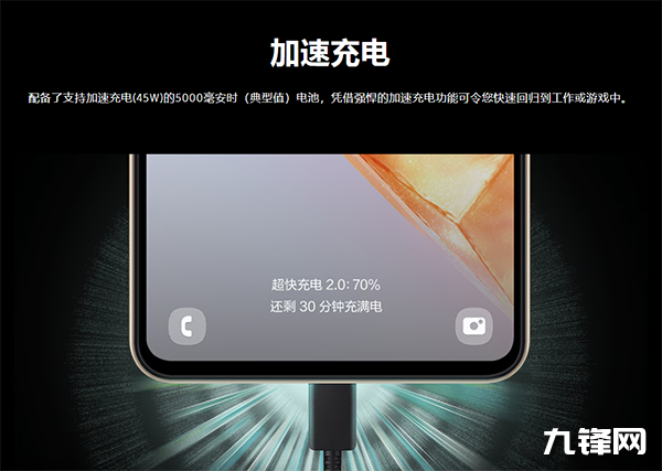 在保持輕薄的機(jī)身尺寸下,該機(jī)搭載了5000毫安時(shí)大電池,并且支持45W有線加速充電。