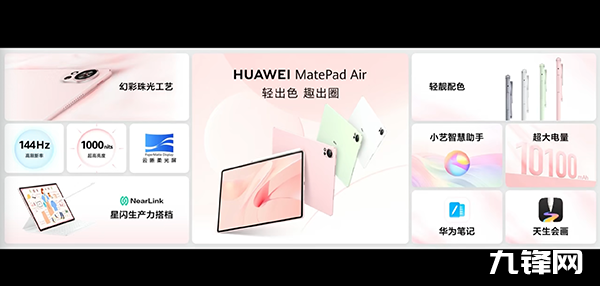 華為MatePad Air 2024采用全新的獨(dú)特美學(xué)的淡顏ID更加時尚年輕,打造全新輕靚色系,提供草木綠、櫻語粉、羽砂白以及煙云灰四款清新配色供選擇。