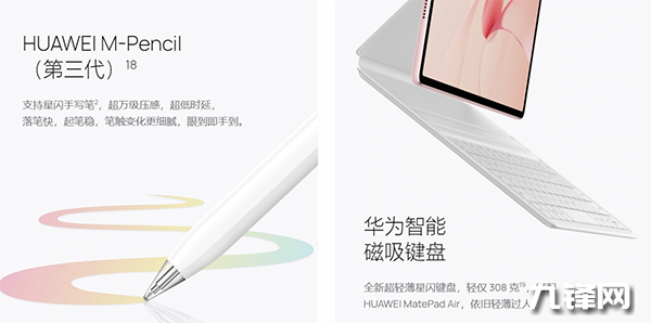 支持,華為MatePad Air 202支持星閃技術(shù)加持的HUAWEi M-Pencil(第三代)手寫筆以及全新超輕薄星閃鍵盤。