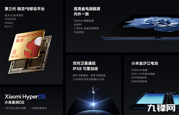 主要配置上,小米MIX Fold4搭載驍龍8Gen3旗艦處理器+LPDDR5X內(nèi)存+UFS4.0閃存性能組合,輔以11912mm2散熱面積的不銹鋼VC均熱板+高密度石墨進(jìn)行散熱。