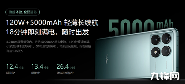 紅米K70內置5000mAh電池搭配120W閃充,兼顧了續(xù)航和充電速度,內置澎湃P2充電芯片和G1電池管理芯片,優(yōu)化充電速度和續(xù)航能力,延長電池壽命。