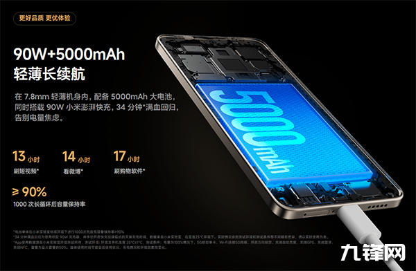 另外,它采用了90W快充,針對多種場景提供算法支持,以加快充電速度、延緩電池衰老,實測熄屏充電,5分鐘充至25%,15分鐘充至60%,39分鐘完全充滿。