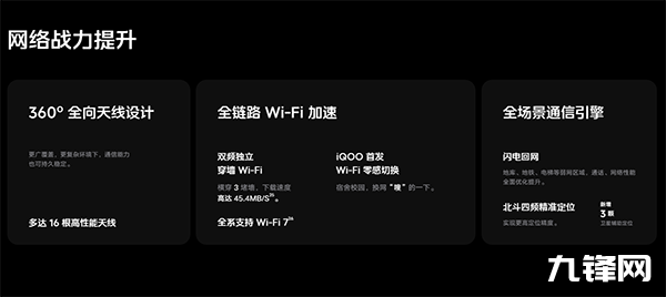 可以說,這個(gè)iQOO Neo9 Pro升級(jí)了Neo最完備的天線方案,高性能天線的數(shù)量達(dá)到了16根,做到360o面面俱到,Neo首次升級(jí)旗艦同款的獨(dú)立電競數(shù)據(jù)天線、雙頻獨(dú)立穿墻Wi-Fi和Wi-Fi零感切換千次切網(wǎng)0卡頓。