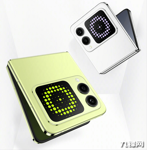 華為nova Flip提供了向新綠、櫻語粉、零度白、星耀黑四款配色,其中星耀黑采用了素皮壓花工藝,而前三款則是玻璃質(zhì)感,其中的向新綠是nova Flip的主打配色,官方表示是“超脫于自然界的先鋒